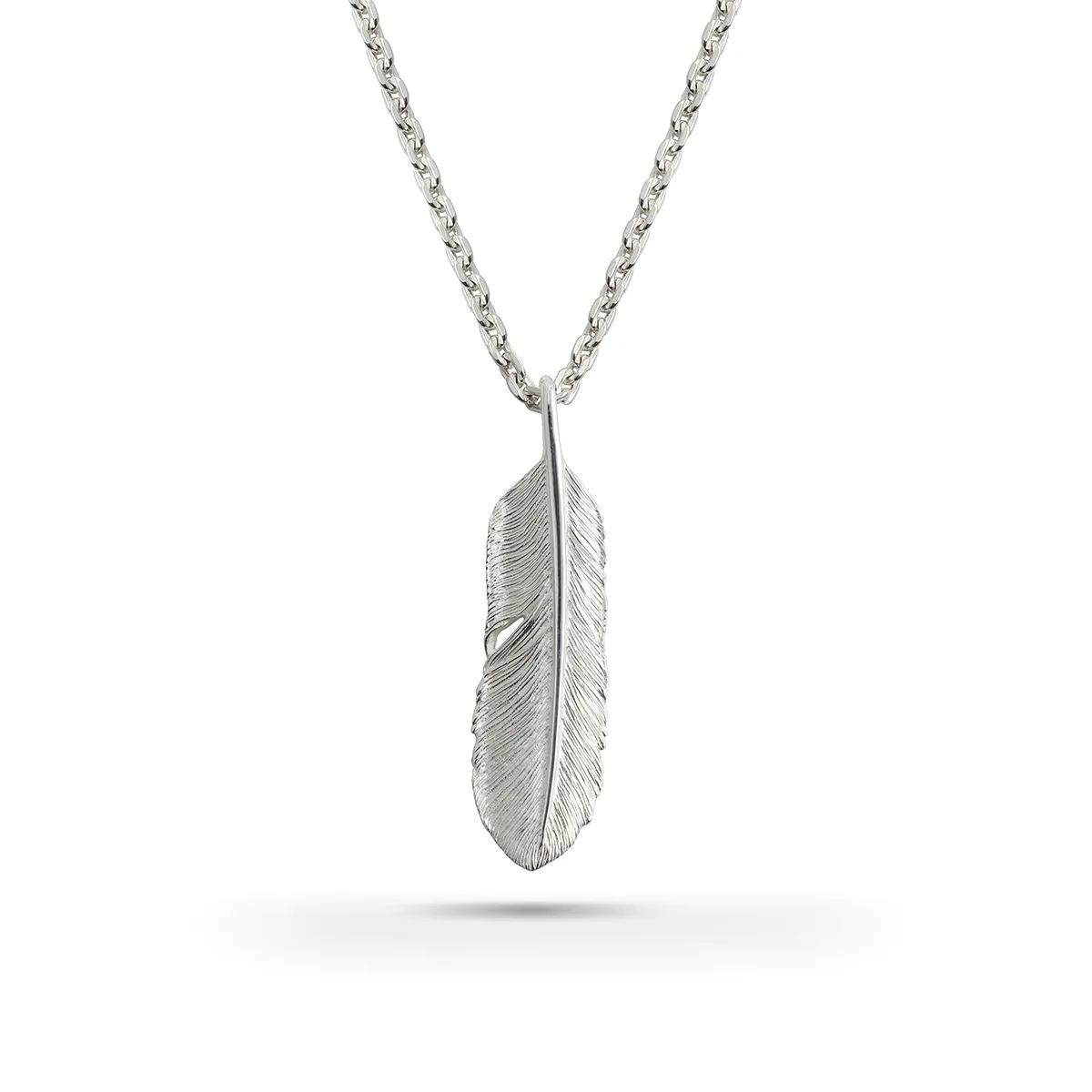 Inspired by the feather of a bald eagle, this design reflects Native American culture, symbolizing honor and wisdom. The right-facing direction encourages moving forward, making this piece both meaningful and versatile, ideal for layering or wearing alone.