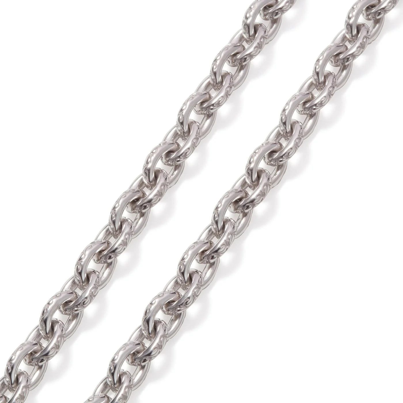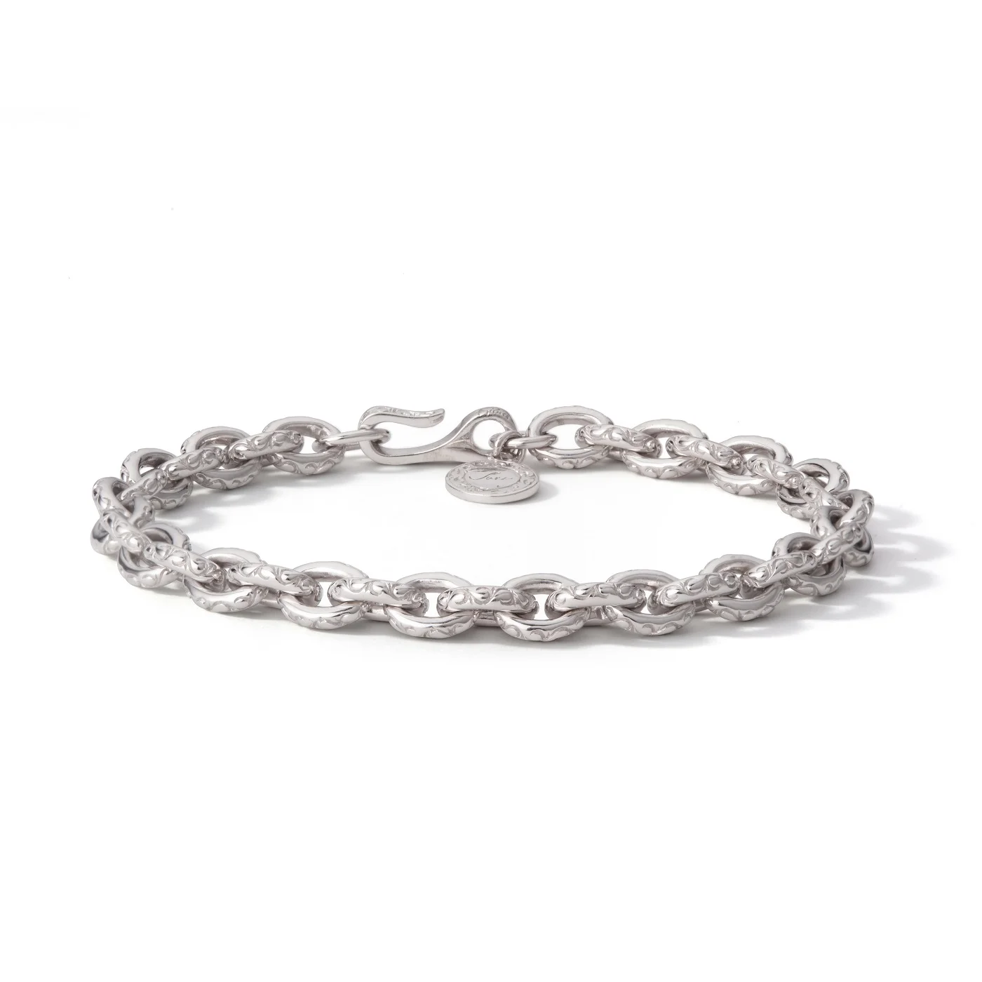 This bracelet features an intricate arabesque pattern on each link, offering a refined design with a soft, rounded finish. Despite its delicate appearance, the weight of the silver adds substance, creating a piece that is both elegant and durable. Ideal for both men and women, it provides versatility to complement any style.