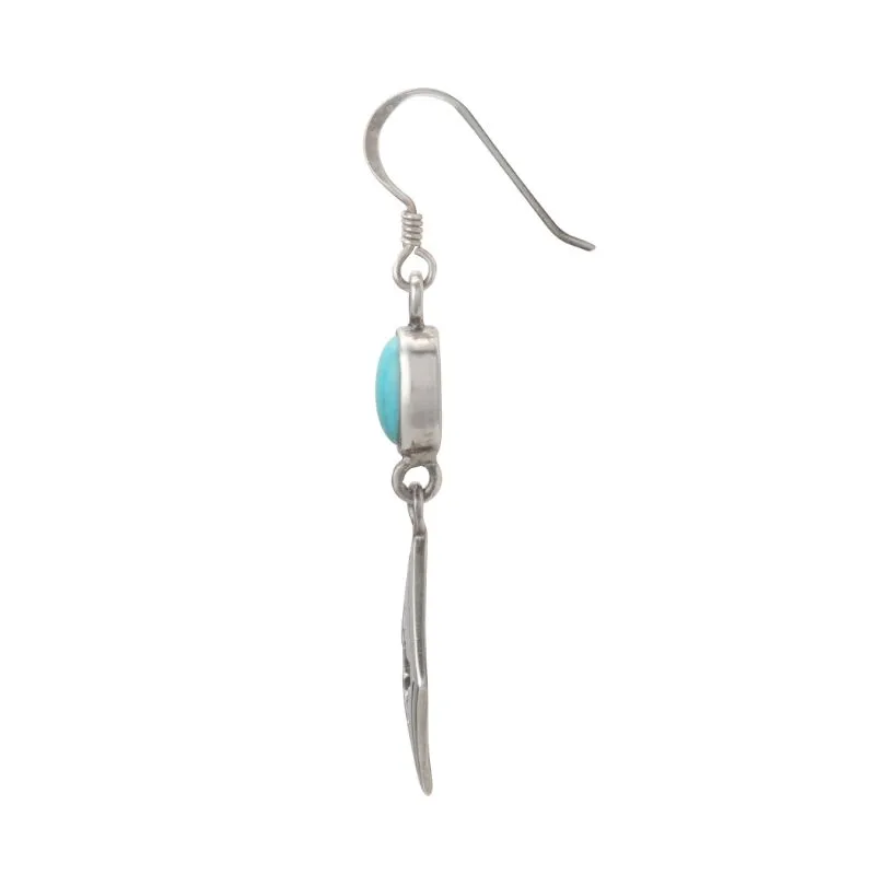 These earrings showcase a combination of sterling silver and turquoise, with a simple oval turquoise stone complemented by a plate with an openwork pattern. The vibrant turquoise adds a pop of color, bringing a sense of energy and vitality to the design. These earrings are both eye-catching and meaningful, perfect for adding a touch of elegance to any look.
