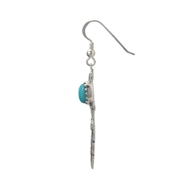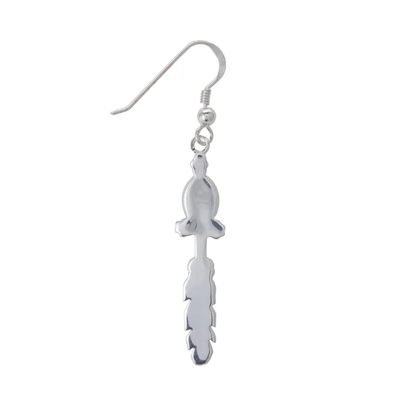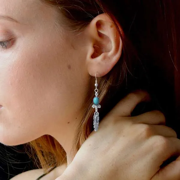 These earrings feature a beautifully carved feather design, enhanced by turquoise stones. The floral motifs bring an extra level of sophistication, while the turquoise symbolizes tranquility and protection. The combination of the feather and turquoise makes these earrings both striking and meaningful, perfect for those who appreciate nature-inspired elegance.